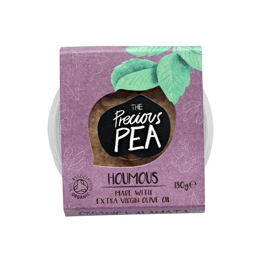Seeking out the plumpest organic kalamata olives they could, The Precious Pea have chosen these meaty olives to add a subtle fruitiness to their rich and smooth houmous. Awarded silver, by the Taste of the West Awards, in 2018.