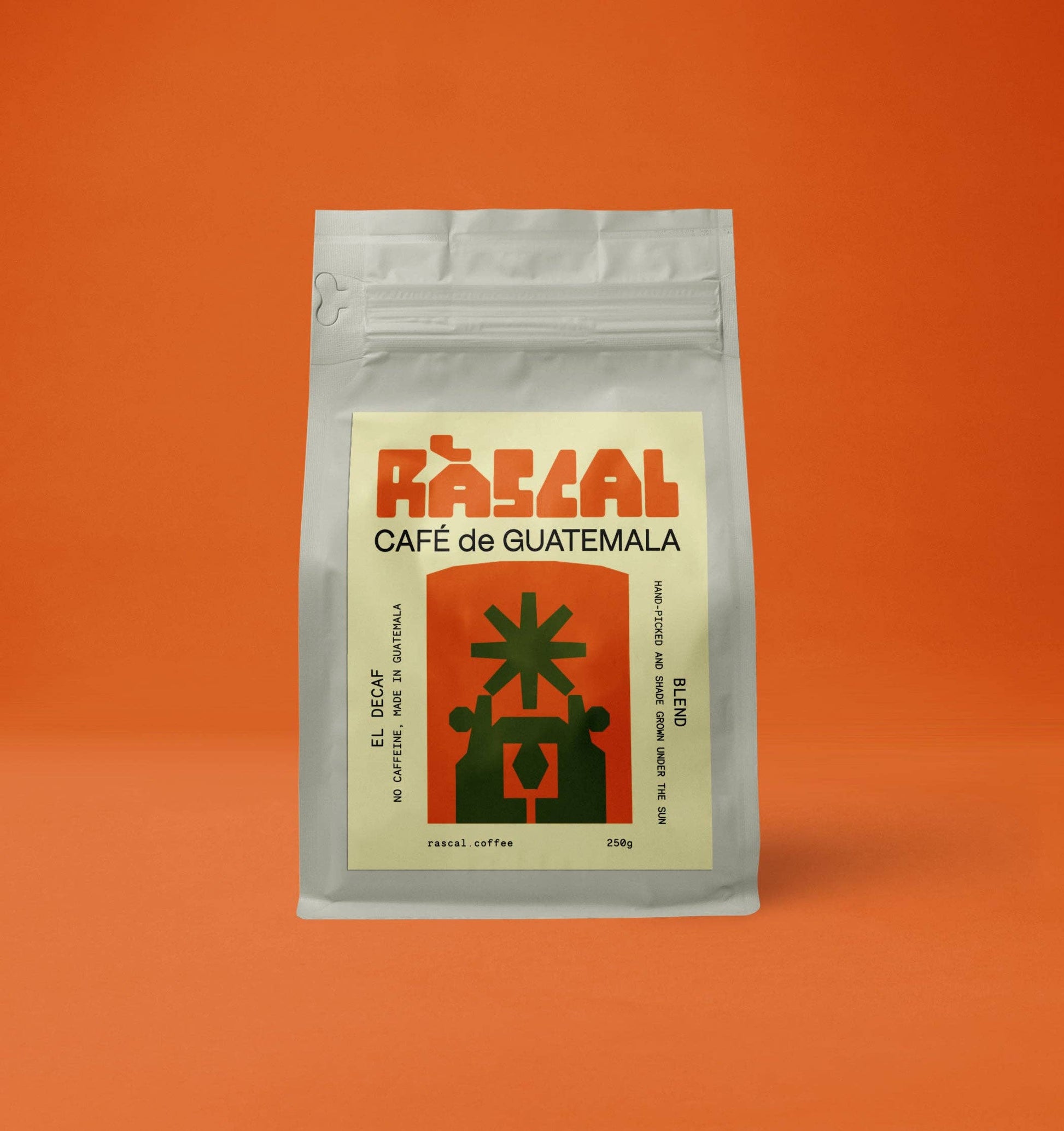 El Decaf is a carefully crafted blend of beans from some of Guatemala’s most celebrated farms: El Durazno, San Jerónimo Miramar, Rabanales, San Jorge, and Gascon. Sourced from the iconic coffee regions of Atitlán, Antigua, and Nuevo Oriente, each farm brings its own unique character to the cup. Using the sugarcane decaffeination process, this coffee keeps all the rich complexity of its origins while gently removing the caffeine. The result? A beautifully balanced brew with caramel sweetness, smooth chocolatey notes, and a touch of bright fruit - proof that you can have all the flavour without the buzz. Crafted by farmers who've partnered with Rascal for over a decade - who pour their passion into every bean - this decaf is a true celebration of Guatemala’s exceptional coffee landscape. Because sometimes, you just want a damn good coffee… minus the caffeine.
