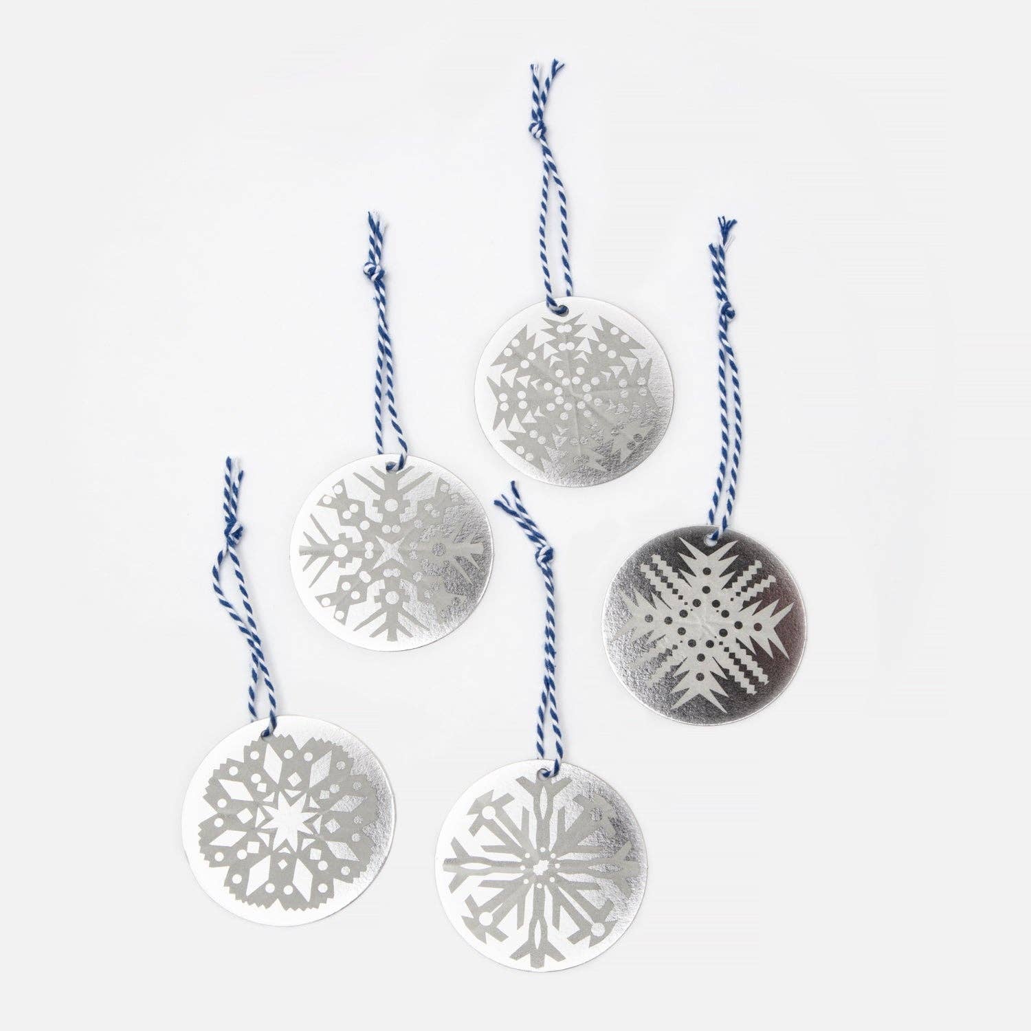 Five beautiful snowflakes, each unique in design, printed shimmering silver card. The perfect finishing touch to a special gift this season and looks great paired with some lovely Hadley gift wrap. Add some sparkle to your displays this Christmas by hanging them from branches or stringing them along lights or twine! Printed on eco-friendly card, they are sold in packs of five with complementing sustainable Dartmoor wool twine.