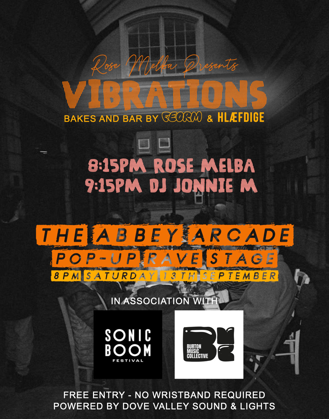 After 8pm, we're hosting a FREE secret DJ set under the archway of the Abbey Arcade. We'll have a bar serving up local beer, cider and natural wines so you can continue the party.